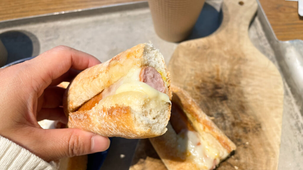 パンはソフトなフランスパンのようで、ちょうどいい固さでチーズも濃すぎず食べやすい感じ。