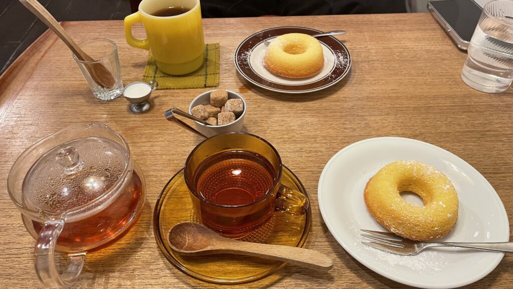 モーニングセットで頼むと、ドーナツor サラダが選べて、私たちはドーナツを選択しました🍩