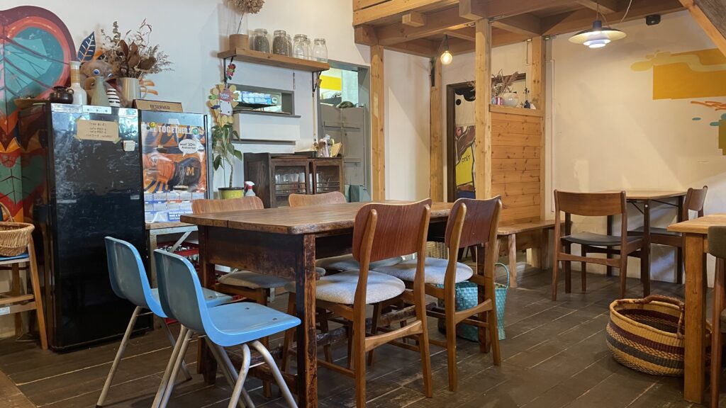 店内は木の温もりがある落ち着いた空間で、おしゃべりにも、のんびり過ごすモーニングにもぴったり。